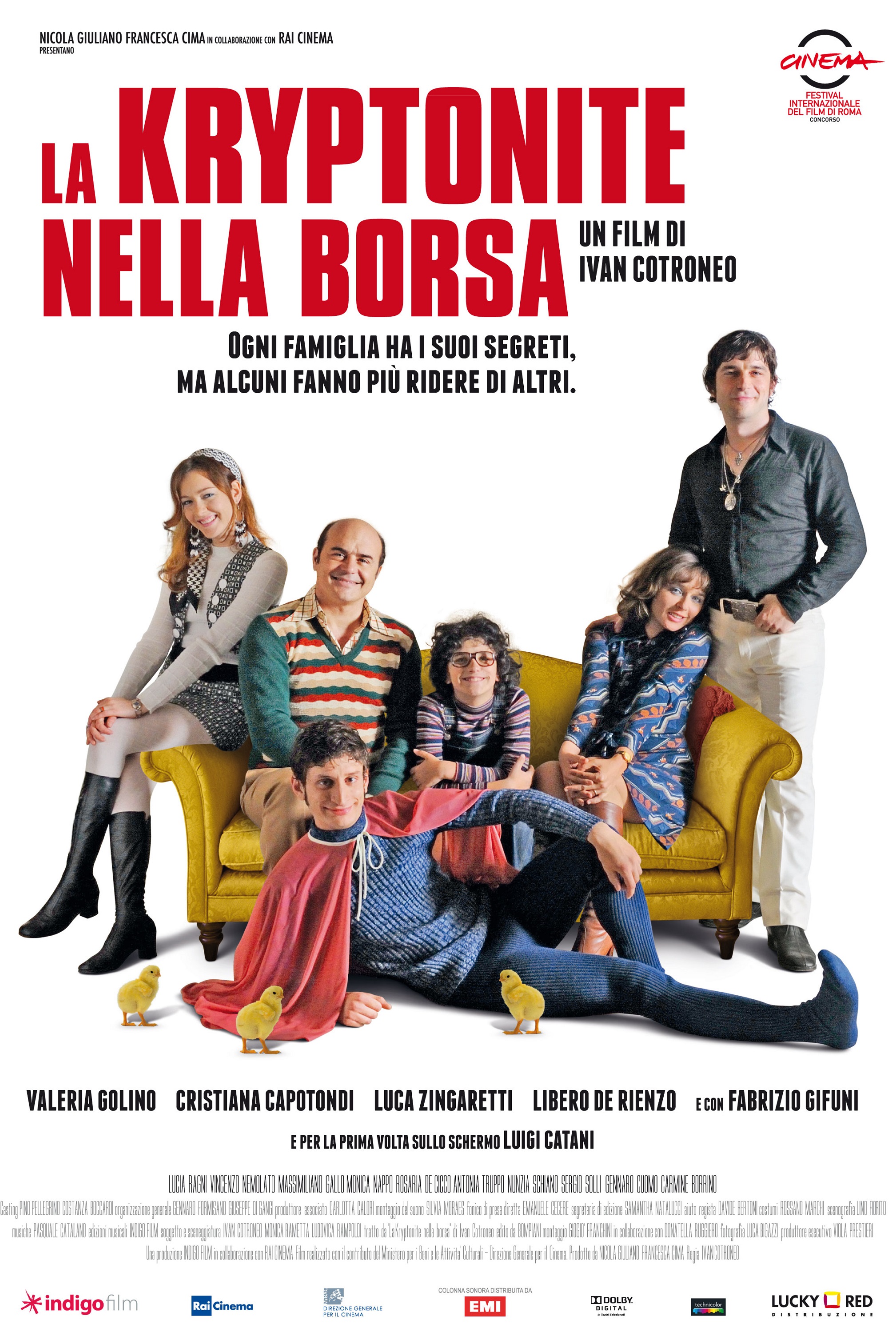 La kryptonite nella borsa (2011) - Pigy - 10-20-2024 Neapel. 1973. Der neunjährige Peppino lebt in einer Familie voller Freaks, in der ständig etwas los ist. Sein bester Freund ist sein älterer Cousin Gennaro, ein Exzentriker, der sich als Superman sieht. Als Gennaro unerwartet stirbt, lässt Peppino ihn in seiner Fantasie wieder auferstehen und verleiht seinem Cousin die Kräfte eines Superhelden. Dank seines neuen imaginären Freundes bewältigt der junge Peppino die Wechselfälle des Alltags und betritt die Welt der Erwachsenen. Naples, 1973. Little Peppino (Luigi Catani) is seven years old, and his existence is marked by a series of bizarre adventures and heavy events that mark his growth, such as the death of his cousin Gennaro, called Superman because of his habit of going around in overalls and cape on his shoulders to stop buses, in search of the mythical kryptonite. Because of the depression that has affected his mother Rosaria (Valeria Golino) who, after discovering that her husband Antonio (Luca Zingaretti) is cheating on her with a younger lover, is being treated by a psychoanalyst recommended by his grandmother, Peppino is entrusted to Titina (Cristiana Capotondi) and Salvatore (Libero De Rienzo), his two crazy uncles in their twenties, who will lead him on a continuous wander among colorful basement parties, feminist movements, sex, smuggled cigarettes, drugs and alcohol. Keeping him company will always be the ghost of his cousin. |