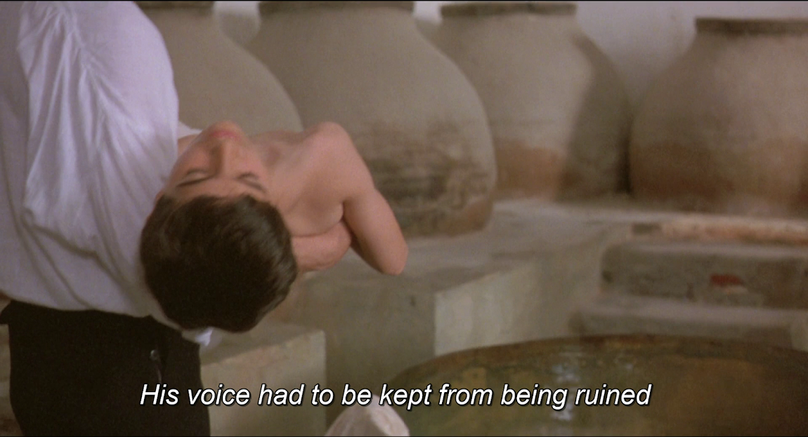 Farinelli (Stefano Dionisi) ist ein schon in jungen Jahren ein herausragender Sänger. Damit sich daran nichts ändert lässt ihn sein älterer Bruder , der Komponist Riccardo Broschi (Enrico Lo Verso) im Alter von 10 Jahren kastrieren. Und tatsächlich, Farinelli singt weiter und wird in Italien zu einem Phänomen. Sein Gesang verzaubert das ganze Land. Der größte Wunsch des Kastraten ist es, die Arien des großen Komponisten Georg Friedrich Händel (Jeroen Krabbé) zu singen. Dieser jedoch will nicht mit den beiden Brüdern zu tun haben. Während eines AUftritts auf einer Opernbühne singen und spielen der Kastrat und der Komponist um die Gunst des Publikums, bei dem Farinelli besser ankommt. Doch er hat eine schreckliche Offenbarung vor sich: Farinelli, der bisher davon ausgegangen ist, seine Kastration sei ein Unfall gewesen muss herausfinden, dass sein Bruder dafür verantwortlich war. Es kommt zum Bruch und Farinelli flieht mit seiner Geliebten Alexandra (Elsa Zylberstein) an den spanischen Hof.