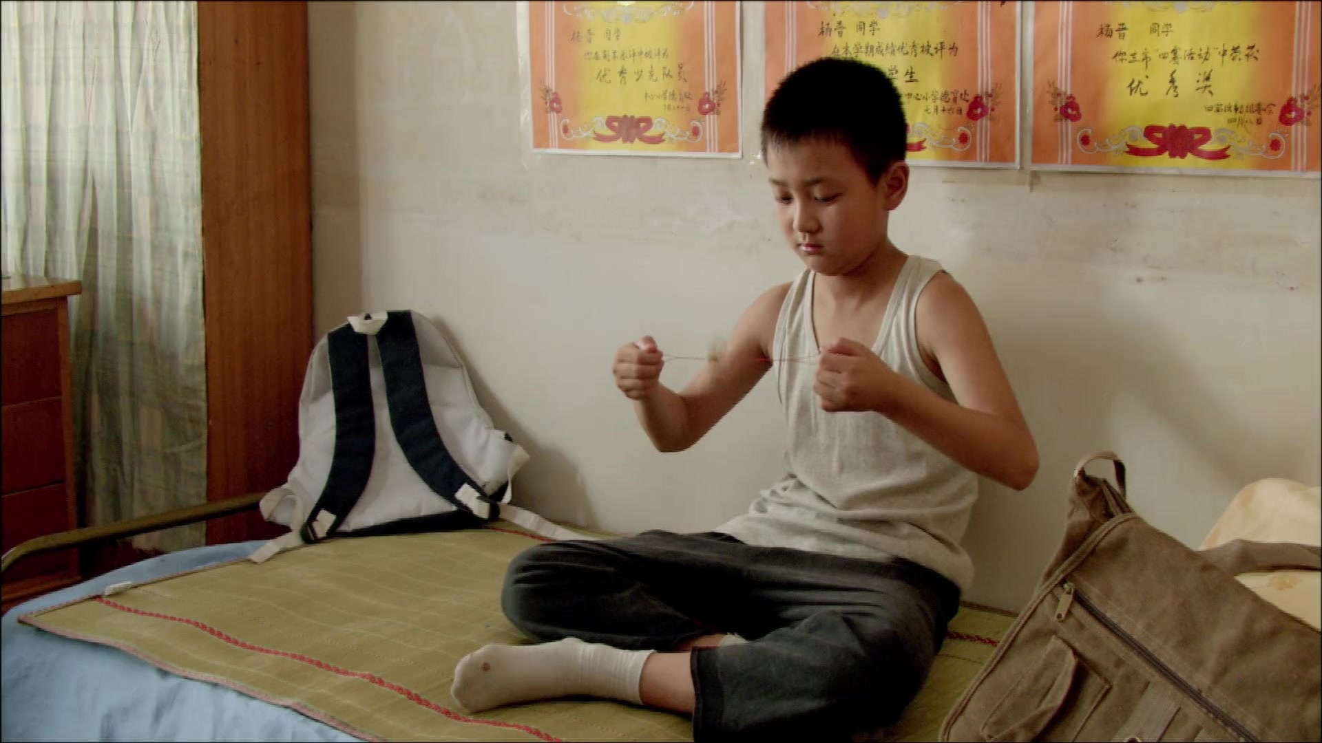 Xiaobo and Yangjin are to spend the school holidays with their families in the countryside. Driving out of the city feels like going back in time. There’s hardly any traffic, only an antiquated bus that bumps along the unpaved road and a motorbike with a cargo rack that serves as a shared taxi. They may be the best of friends but Xiaobo and Yangjin are very different. One of them is tall, the other small. One knows everything you need to know at school and the other is the worst pupil in the whole class. But they are both equally cheeky. Xiabo loves to tell stories, like the one about the huge fish that bit his finger or the other about thousands of crabs he saw on the riverbank. Who knows if they’re true or the product of his lively imagination? His stories are animated and woven into the film, as are the other protagonists’ fantasies. Instead of going straight to his grandmother as he should, Yangjin first goes home with Xiaobo. Xiaobo’s father is strict and Xiaobo is only too glad to have his friend with him. Every day, Yangjin plans to go home, but every day he ends up staying on at Xiaobo’s place. And no wonder: the things they get up to just get better and better.