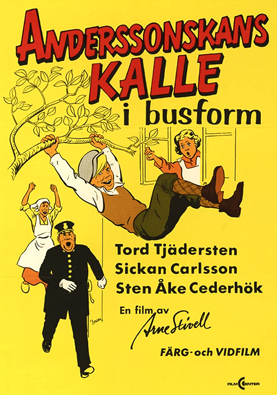 Als Komiker, um den großartigen Bus von Kalle Andersson zu erreichen, stürzte er sich in die Stadt, um in Stockholm in Södermalm zu leben. Die ersten drei Monate von Kalles Bus waren Pilgerskan, Bobergskan und Konstapel Jonsson.